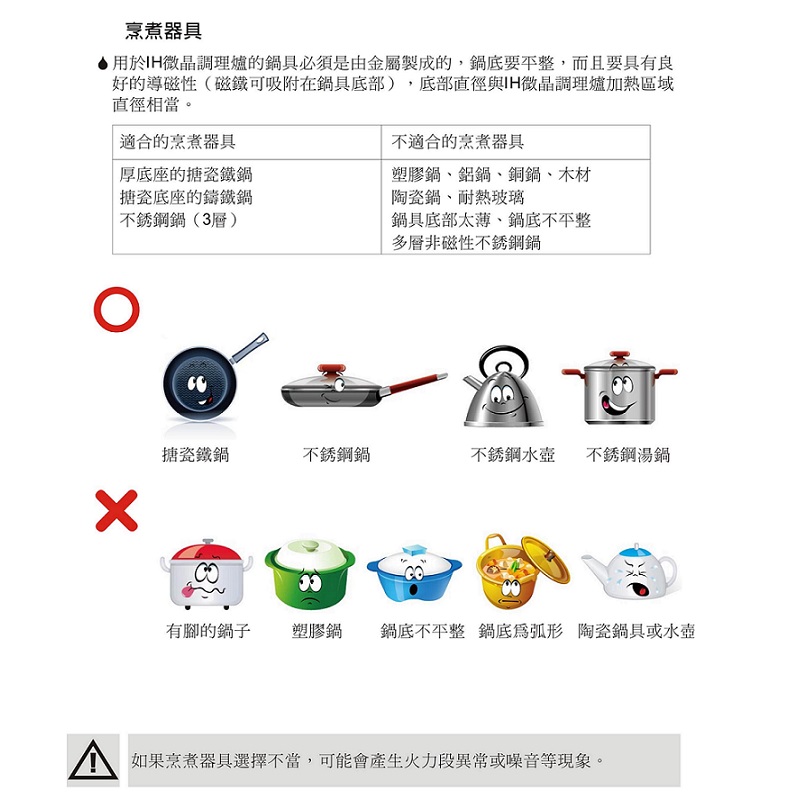 IH爐因作動原理關係,非所有鍋具皆能適用。