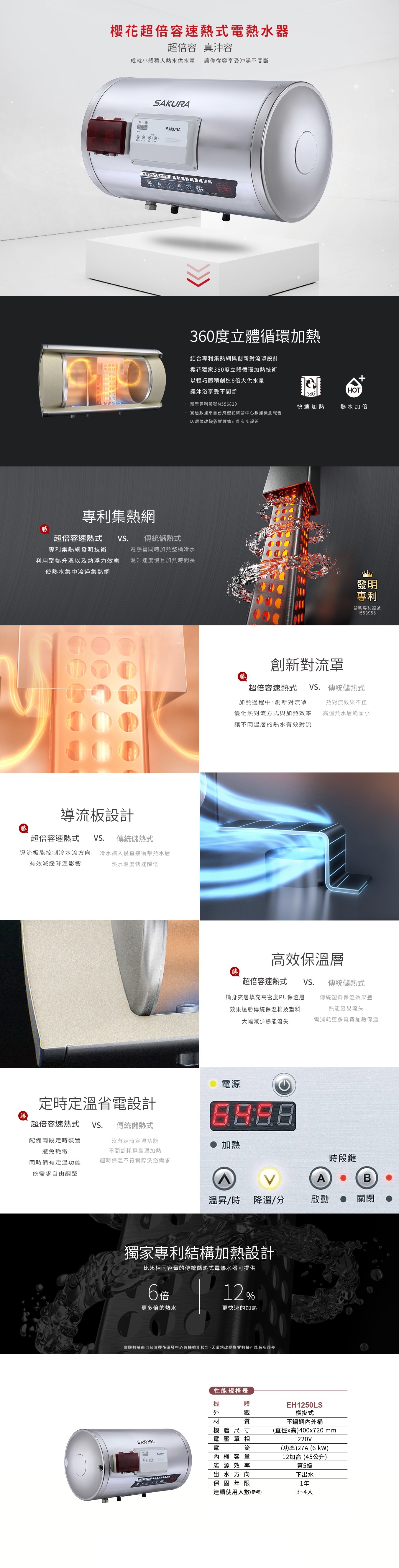 ・獨家專利集熱網加熱設計,加倍熱水量,快速加熱