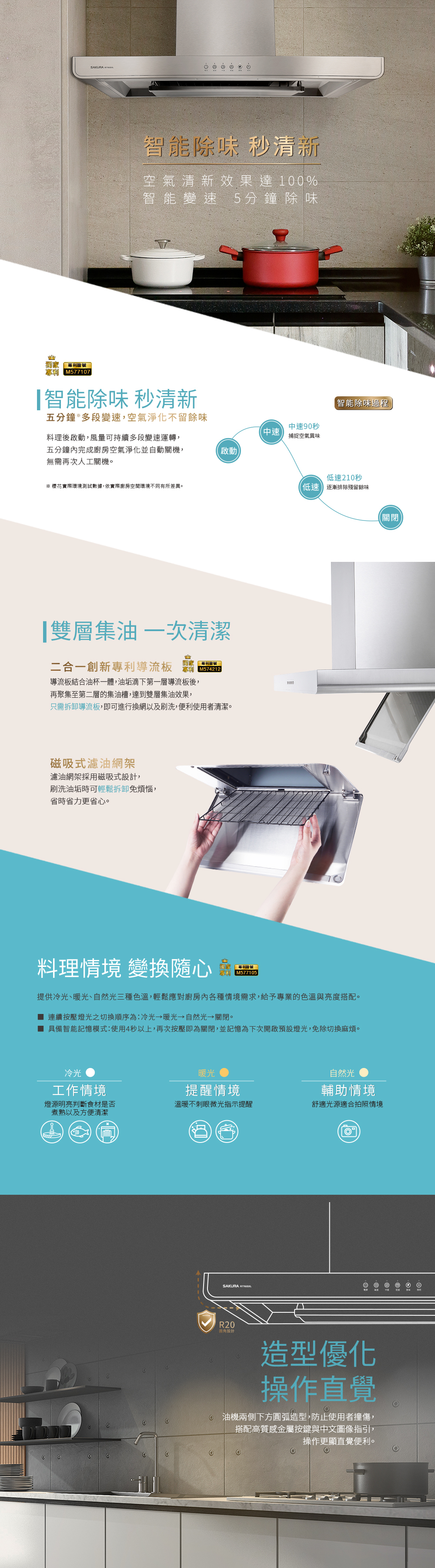 櫻花 R7765SL/SXL歐化除油煙機-環吸系列