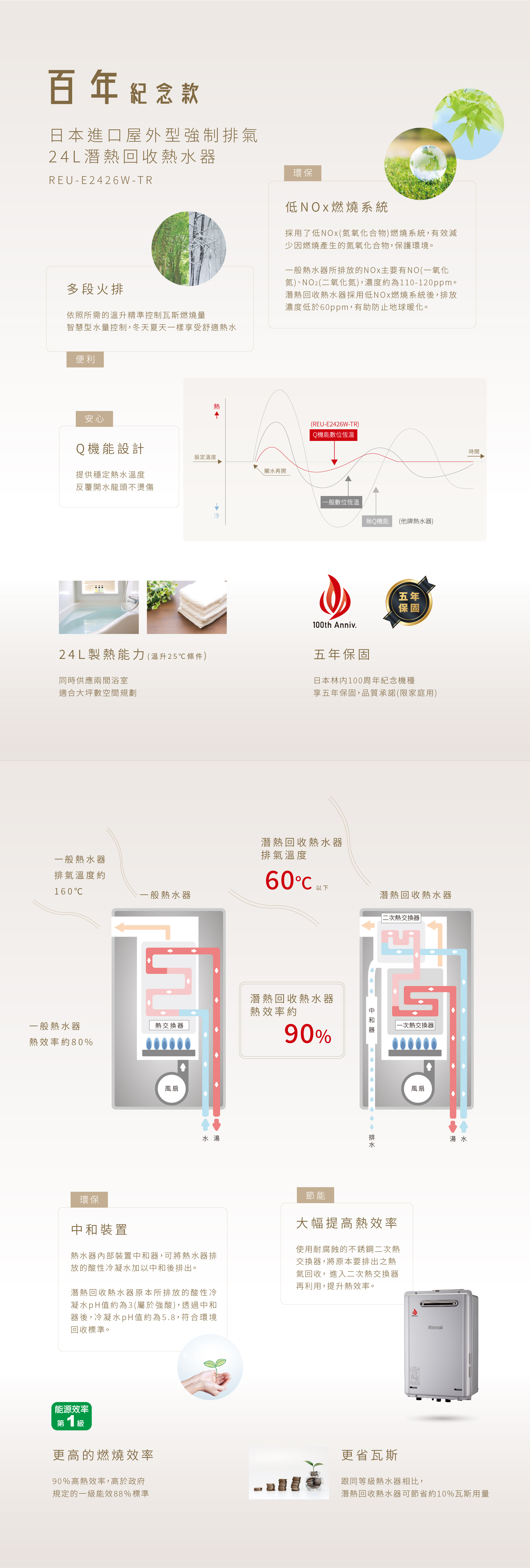 林內 REU-E2426W-TR 屋外型強制排氣24L潛熱回收熱水器